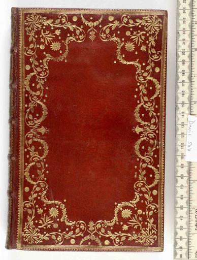 | Keywords: Della natura delle cose vol II - Upper cover (Davis544).jpg Style Frame Rococo; Caption Upper cover; Colour Red; Edge Unspecified exhibition history Decorative Technique Tooled in gold; Cover Material Goatskin includes morocco turkey etc Unspecified object history Text 1754; Paris; Unspecified object type Cc-zero place of creation Binding France place of discovery Leon Gruel Manuel historique et bibliographique de l'amateur de reliures Paris 1887 vol I plate opposite p85 relating to binding with Douceur ticket British Library image http //www bl uk/catalogues/bookbindings/LargeImage aspx RecordId 020-000002100 ImageId ImageId 40655 Copyright BL Della natura delle cose vol II Uploaded with GWToolset Della natura delle cose vol II - Upper cover Davis544 http //www webarchive org uk/bldatasets/bindings/6260_4 jpg Bookbinding 18th-century bookbinding British Library Bookbindings |