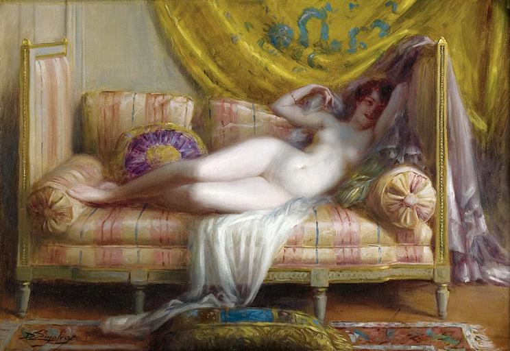 Keywords: Delphin Enjolras - Odalisque.jpg Artwork Creator Delphin Enjolras Oil on Canvas Size cm 55 38 object history en Acquired directly from the artist; thence by descent exhibition history credit line place of creation D Enjolras lower left signature http //www sothebys com/en/auctions/ecatalogue/2007/19th-century-paintings-including-spanish-painting-and-symbolism-the-poetic-vision-l07103/lot 390 html Sothebys com http //www sothebys com/content/dam/stb/lots/L07/L07103/L07103-390-lr-1 jpg direct link accession number PD-old-auto 1945 Paintings of nude recumbent females Nude or partially nude women looking at viewer in art Paintings of Odalisques Nude women with red hair in art Delphin Enjolras Images from Sotheby's Nude women in bed in art |