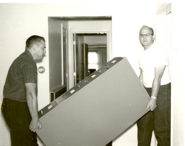 | Keywords: ray horst rayhorst mennonite board of missions mennoniteboardofmissions voluntary service voluntaryservice delvin nussbaum delvinnussbaum filing cabinet filingcabinet monochrome Caption: October, 1966. Elkhart, Indiana. Moving day for the Relief and Service Office. Here Delvin Nussbaum and Ray Horst are carrying a filing cabinet in. Citation: Mennonite Board of Missions Photographs. Missionaries, 1955-73. IV-10-7.2 Box 7 Folder 71. Mennonite Church USA Archives - Goshen. Goshen, Indiana. Caption: October, 1966. Elkhart, Indiana. Moving day for the Relief and Service Office. Here Delvin Nussbaum and Ray Horst are carrying a filing cabinet in. Citation: Mennonite Board of Missions Photographs. Missionaries, 1955-73. IV-10-7.2 Box 7 Folder 71. Mennonite Church USA Archives - Goshen. Goshen, Indiana. |