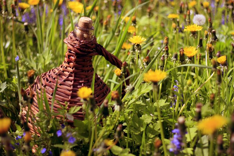 Keywords: demijohn bottle glass bottling water antique flower meadow yellow