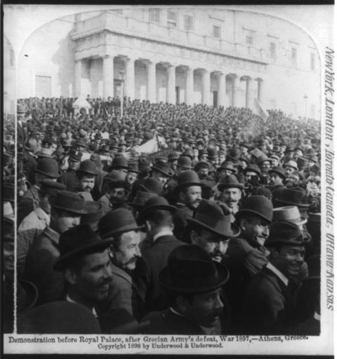 | Keywords: Demonstration before Royal Palace, after Grecian Army's defeat, War 1897 - Athens, Greece.jpg en Demonstration before the Royal Palace at Athens after the Greek Army's defeat in the war with Ottoman Turkey in 1897 2012-10-02 16 19 41 http //www loc gov/pictures/item/2003681462/ Library of Congress Underwood Underwood LOC-image cph 3b13451 PD-Underwood Uploaded with UploadWizard Greco-Turkish War 1897 Demonstrations and protests in Athens 1897 in Athens Underwood Underwood | ||||