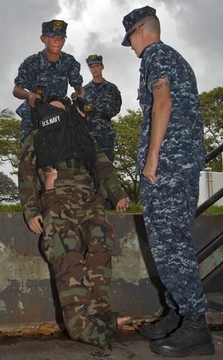 Keywords: Demonstration of daily operations 130413-N-WF272-115.jpg en U S Navy Master-at-Arms 2nd Class Tyson Meyer right with a harbor patrol unit supervises a child with Battleship Missouri Division-Hawaii U S Navy League Cadet Corps as the child pulls up a training dummy as part of a water rescue simulation April 13 2013 at Ford Island Joint Base Pearl Harbor-Hickam Hawaii Masters-at-arms assigned to security forces harbor patrol and military police working dog units provided demonstrations of their daily operations U S Navy photo by Mass Communication Specialist 3rd Class Diana Quinlan/Released 2013-04-13 Petty Officer 3rd Class Diana Quinlan https //www dvidshub net/image/910290 130413-N-WF272-115 2013-04-19 05 38 JOINT BASE PEARL HARBOR-HICKAM HI US PD-USGov-Military-Navy 2013 in Pearl Harbor People at Joint Base Pearl Harbor-Hickam Images from DoD uploaded by Fæ |