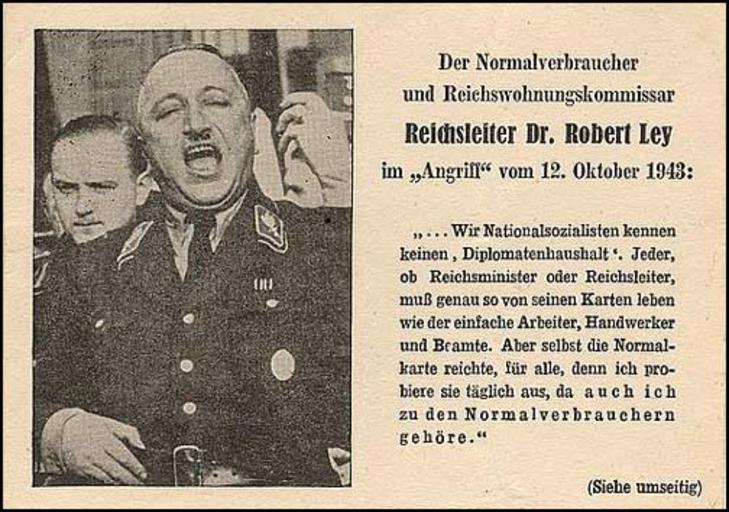 | Keywords: Demoralization Leaflet Robert Ley Postcard front.jpeg en Front of US Government leaflet attempting to demoralize German enemy by showing that their leadership lived a much better life 1943 http //www psywarrior com/DivideandConquer html Federal Government PD-USGov World War II anti-German propaganda Uploaded with UploadWizard |