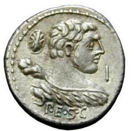 Keywords: Denarius Publius Cornelius Lentulus Marcellinus 2 Obverse.jpg ru Дена ий се еб о Дата чеканки 100 г до н э онетный дво Рим вес 3 92 г АВЕРС Бюст молодого Ге кулеса в шку е льва вп аво отве нушись от з ителя; на левом плече дубина; за головой щит; под бюстом PE S C Publice senatus consulto ; спе еди латинская буква I Кайма из точек РЕВЕРС Рома в домпехах стоит анфас де жит копье упе евшись левой укой в бед о; ее увенчивает венком Гений имского на ода кото ый де жит ог изобилия в левой уке; в поле слева латинская буква I В об езе LENT MAR F NT MAR моног аммой Lentulus Marcelli filius Кайма из лав ового венка http //ancientrome ru/numizm/catalog/coin htm id 1199 Author I century B C Denarius Publius Cornelius Lentulus Marcellinus moneyer 100 BC PD-old |