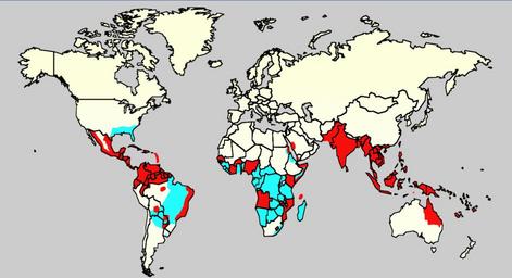 | Keywords: Dengue06.png health map en Map showing the distribution of dengue fever in the world as of 2006 Map produced by the Agricultural Research Service of the US Department of Agriculture Slide 8 of a presentation by Gary G Clark PhD entitled Dengue An emerging arboviral disease Cyan Areas infested with Aedes aegypti Red Areas with Aedes aegypti and recent epidemic dengue fever Referencias Celeste http //www afpmb org/meetings/TriService2007/Presentations/ Monday/OClubMorning/TRIServiceDENemergingJAX2007 ppt Áreas infectadas con el mosquito Aedes aegyptis Rojo Áreas que estan infectadas con el mosquito Aedes Aegyptis y que tienen una reciente expansión epidémica author PD-USGov Dengue maps Disease incidence world maps |