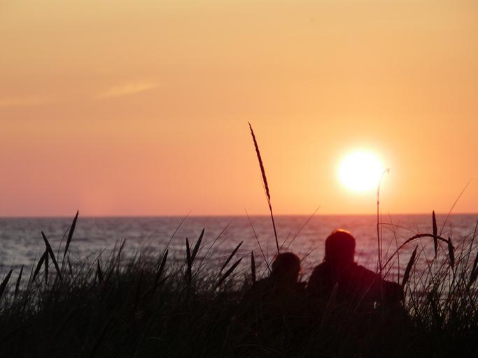 Keywords: denmark sunset north sea clouds sun landscape back light afterglow nature abendstimmung beach reed romantic mood horizon