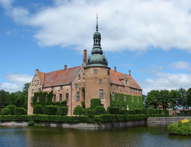 Keywords: denmark vitskol abbey religion faith buildings structure architecture church decorative landmark sky clouds pond lake water reflections plants flowers nature outside