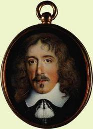 | Keywords: portrait people indoor Denzil Holles, 1st Baron Holles PC (31 October 1599 – 17 February 1680) was an English statesman and writer, best known as one of the five members of parliament whom King Charles I of England attempted to arrest in 1642. Holles was the second son (John was one of his brothers) of John Holles, 1st Earl of Clare (c. 1564–1637), by Anne, daughter of Sir Thomas Stanhope. The favourite son of his father and endowed with great natural abilities, Denzil Holles grew up under advantageous circumstances. Destined to become one of the most formidable antagonists of King Charles's arbitrary government, he had been Charles's childhood friend. The Earl of Clare was, however, no friend to the Stuart administration, being especially hostile to the Duke of Buckingham; and on the accession of Charles to the throne the king's offers of favour were rejected. In 1624 Holles was returned to parliament for Mitchell in Cornwall, and in 1628 for Dorchester. He had from the first a keen sense of the humiliations which attended the foreign policy of the Stuart kings. Writing to Strafford, his brother-in-law, on November 29, 1629, he severely censures Buckingham's conduct of the expedition to the Isle of Ré; "since England was England," he declared, "it received not so dishonourable a blow"; and he joined in the demand for Buckingham's impeachment in 1628. To these discontents were now added the abuses arising from the king's arbitrary administration. On March 2, 1629, when Sir John Finch, the speaker, refused to put Sir John Eliot's Protestations and was about to adjourn the House by the king's command, Holles together with another member, Sir Walter Long, thrust him back into the chair and swore "he should sit still till it pleased them to rise." Meanwhile Eliot, on the refusal of the speaker to read the Protestations, had himself thrown them into the fire; the usher of the black rod was knocking at the door for admittance, and the king had sent for the guard. But Holles, declaring that he could not render the king or his country better service, put the Protestations to the House from memory, all the members rising to their feet and applauding. In consequence a warrant was issued for his arrest with others on the following day. They were prosecuted first in the Star Chamber and subsequently in the King's Bench. When brought upon his habeas corpus before the latter court Holles offered with the rest to give bail, but refused sureties for good behaviour, and argued that the court had no jurisdiction over offences supposed to have been committed in parliament. On his refusal to plead he was sentenced to a fine of 1000 marks and to imprisonment during the king's pleasure. Holles had at first been committed and remained for some time a close prisoner in the Tower of London. The "close" confinement, however, was soon changed to a "safe" one, the prisoner then having leave to take the air and exercise, but being obliged to maintain himself at his own expense. On October 29 Holles, with Eliot and Valentine, was transferred to the Marshalsea. His resistance to the king's tyranny did not prove so stout as that of some of his comrades in misfortune. Among the papers of the secretary Sir John Coke is a petition of Holles, couched in humble and submissive terms, to be restored to the king's favour; having given the security demanded for his good behaviour, he was liberated early in 1630, and on October 30 was allowed bail. On the outbreak of the Civil War Holles, who had been made lieutenant of Bristol, was sent with Bedford to the west against the marquess of Hertford, and took part in the unsuccessful siege of the latter at Sherborne Castle. He was present at Edgehill, where his regiment of Puritans recruited in London was one of the few which stood firm and saved the day for the parliament. On November 13, 1642 his men were surprised at Brentford during his absence, and routed after a stout resistance. In December he was proposed for the command of the forces in the west, an appointment which he appears to have refused. Notwithstanding his activity in the field for the cause of the parliament, the appeal to arms had been distasteful to Holles from the first. As early as September he surprised the House by the marked abatement of his former "violent and fiery spirit," and his changed attitude did not escape the taunts of his enemies, who attributed it scornfully to his disaster at Brentford or to his new wife. He probably foresaw that, to whichever side victory fell, the struggle could only terminate in the suppression of the constitution and of the moderate party on which all his hopes were based. His feelings and political opinions, too, were essentially aristocratic, and he regarded with horror the transference of the government of the state from the king and the ruling families to the parliamentary leaders. He now advocated peace and a settlement of the disputes by concessions on both sides; a proposal full of danger because impracticable, and one therefore which could only weaken the parliamentary resistance and prolong the struggle. He warmly supported the peace negotiations on November 21, 1642 and December 22, 1642, and his attitude led to a breach with Pym and the more determined party. In June 1643 he was accused of complicity in Waller's plot, but swore to his innocency; and his arrest with others of the peace party was even proposed in August, when Holles applied for a pass to leave the country. On January 26, 1648 the eleven members, who had not appeared when summoned to answer the charges against them, were expelled. Not long afterwards, however, on June 3, these proceedings were annulled; and Holles, who had then returned and was a prisoner in the Tower with the rest of the eleven members, was discharged. He returned to his seat on August 14. Holles was one of the commissioners appointed to treat with the king at Newport on September 18, 1648. Aware of the plans of the 