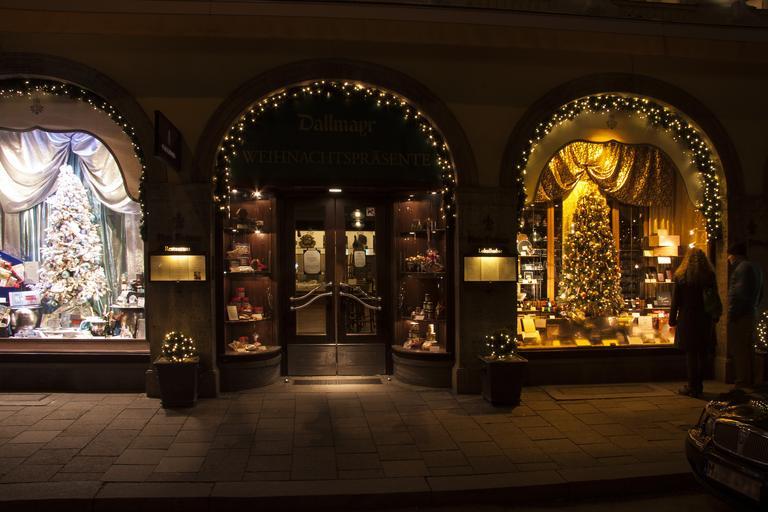 Keywords: department store delicacies restaurant christmas splendor christmas shopping facade window building city architecture yellow illuminated night photograph