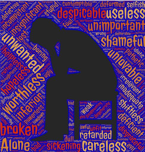 Keywords: depression depressed forlorn despondent sad worthless useless dejection shameful broken unlovable insignificant inferior hopeless helpless incompetent pathetic alone retarded deficient inadequate self-hatred self-criticism weak stupid unhappy dejected sorrow sadness melancholy gloomy downhearted miserable despairing misery