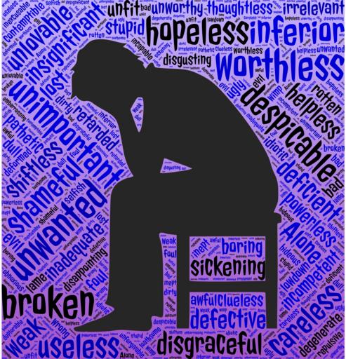 Keywords: depression depressed forlorn despondent sad worthless useless dejection shameful broken unlovable insignificant inferior hopeless helpless blue incompetent pathetic alone retarded deficient inadequate self-hatred self-criticism weak stupid unhappy dejected sorrow sadness melancholy gloomy downhearted miserable despairing misery