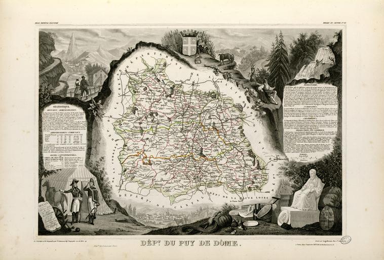 Keywords: Dépt. du Puy de Dôme (région du centre) - Fonds Ancely - B315556101 A LEVASSEUR 066.jpg Titre complet du recueil Atlas national illustré des 86 Départements et des Possessions de la France divisé par Arrondissements Cantons et Communes avec le tracé de toutes les routes chemins de fer et canaux Dressé d'après les Travaux du Cadastre du Dépôt de la Guerre et des Ponts et Chaussées par V Levasseur Ingénieur Géographe attaché au Génie du Cadastre et de la Ville de Paris Gravé sur acier par les meilleurs artistes Imprimerie de Lemercier à Paris ou imprimerie Dupuich à Paris Page de titre et 100 pl en n et b et en coul dont un tableau statistique et 2 cartes dépliantes Ancely René 1876 - 1966 Possesseur fre public domain domaine public B315556101_A_LEVASSEUR_066 jpg image/jpeg 1 f de pl ; 53 cm Combette A Editeur Lemercier 17 -18 ; imprimeur Imprimeur http //numerique bibliotheque toulouse fr/collect/general/index/assoc//ark /74899/B315556101_A_LEVASSEUR_066 dir/B315556101_A_LEVASSEUR_066 jpg Bibliothèque municipale de Toulouse A-LEVASSEUR 63 Creator Victor Levasseur http //catalogues toulouse fr/web2/tramp2 exe/do_keyword_search/log_in setting_key BMT1 servers 1home query p001350 vignette http //numerique bibliotheque toulouse fr/collect/general/index/assoc//ark /74899/B315556101_A_LEVASSEUR_066 dir/B315556101_A_LEVASSEUR_066_thumb jpeg 1854 Dépt du Puy de Dôme région du centre B315556101_A_LEVASSEUR_066 print - colors - steel engraving Bags Swords in art Shepherds in art Promenades in France Knifemakers Mountains in art Old maps of Puy-de-Dôme Coats of arms of cities in Puy-de-Dôme Clermont-Ferrand Vercingetorix Buckets Rocks in art Couples in art Valleys in art Horses Barrels in art Soldiers in art Bicorne hats Saws Waterfalls in art Knives in art Fruit in art Barriers Engravings of statues Fonds d'Ancely Wine maps Victor Levasseur - Maps of France Uniforms Lace Tents Trails Sitting people in art Louis Charles Antoine Desaix Michel de l'Hospital Batons in art Scissors Engravings of bottles Fonds Ancely Goats
