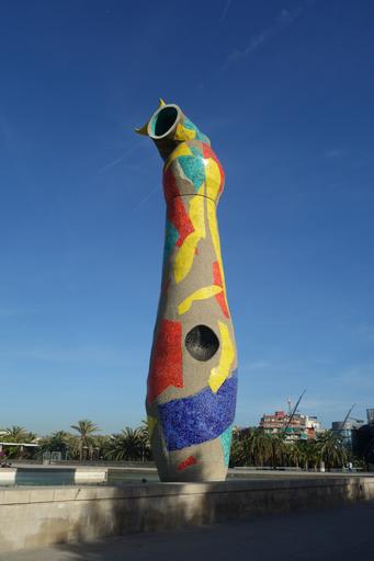 Keywords: design tourism blue famous park spanish art work barcelona bird catalan catalonia culture joan miro landmark monument outdoors sculpture spain vertical