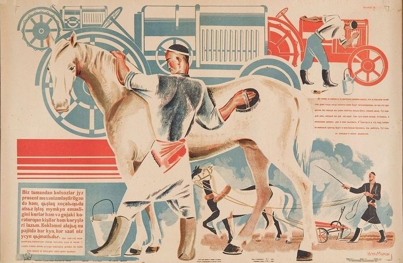 | Keywords: Despite the rise in mechanized farming, “we cannot dispense with the horse” – Russian and Uzbek, Tashkent, 1933 (Mardjani).jpg en Despite the rise in mechanized farming we cannot dispense with the horse Russian and Uzbek Tashkent 1933 Mardjani Foundation ru Плакат 1933 года на усском и узбекском языках п изывающий сельскохозяйственных абочих заботиться о лошадях несмот я на механизацию колхозов Авто А иколаев 1933 Taken from http //www eurasianet org/node/67527 this site А иколаев Custom license marker 2014 03 11 PD-old-70 Uploaded with UploadWizard Posters of Russia Posters of Uzbekistan |