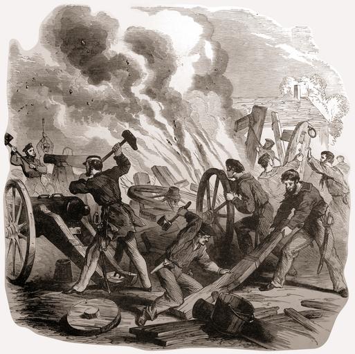 Keywords: surreal monochrome white background drawing On November 14th, 1861, a party commanded by Captain Ammon landed at Beaufort, S. C., from the United States gunboat Seneca, visited the arsenal and destroyed the cannon they found there. Having burnt the gun carriages and knocked off the trunnions, they considered/their work complete. (from Frank Leslie's Illustrated History of the Civil War..., edited by Louis Shepheard Moat, Published by Mrs. Frank Leslie, New York, 1895) On November 14th, 1861, a party commanded by Captain Ammon landed at Beaufort, S. C., from the United States gunboat Seneca, visited the arsenal and destroyed the cannon they found there. Having burnt the gun carriages and knocked off the trunnions, they considered/their work complete. (from Frank Leslie's Illustrated History of the Civil War..., edited by Louis Shepheard Moat, Published by Mrs. Frank Leslie, New York, 1895) |