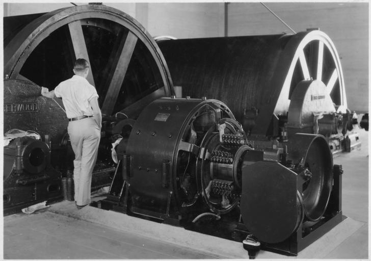 | Keywords: Detail of hoist drum motor and driving equipment, 150-ton cableway hoist house - NARA - 293941.jpg Scope and content Photograph from Volume Two of a series of photo albums documenting the construction of Hoover Dam Boulder City Nevada General notes 293941 Local identifier Department of the Interior Bureau of Reclamation Engineering and Research Center 05/18/1981 - 03/04/1988 NARA's Rocky Mountain Region Denver NRGA Building 48 Denver Federal Center West 6th Avenue and Kipling Street Denver CO 80225-0307 1933-08-29 Record group Record Group 115 Records of the Bureau of Reclamation 1889 - 2008 Record group ARC 444 Photograph albums compiled 1903 - 1972 Series ARC 293611 File unit File unit ARC Variant control numbers NAIL Control Number NRG-115-CONSTPHO85006-BC21933 Other versions <gallery> File Detail of hoist drum motor and driving equipment 150-ton cableway hoist house - NARA - 293941 tif tif </gallery> Key Lidgerwood NARA-cooperation PD-USGov Cableway stations 1933 Six Companies Inc cableways at Hoover Dam construction site Hoist hous interior 1933 in the United States |