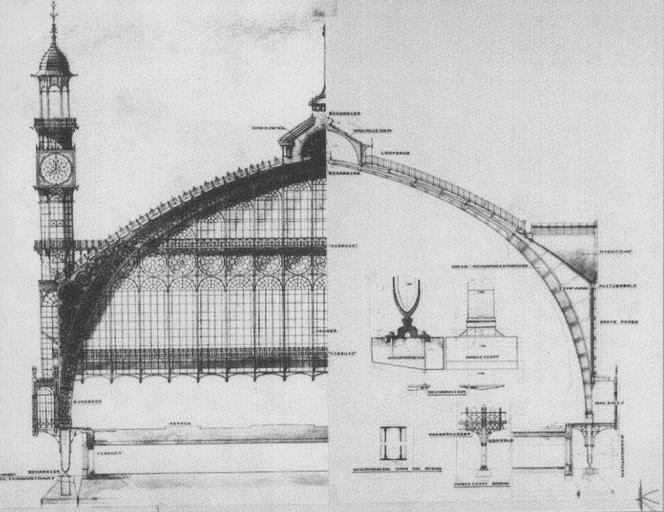 Keywords: Detailed construction sketch; cross-section of the railway hall (platform roof) of the "Antwerp Central" (Antwerpen-Centraal) railway station.tif en Detailed construction sketch; cross-section of the railway hall platform roof of the Antwerp Central Dutch Antwerpen-Centraal railway station On the left side is the side of the street Pelikaanstraat en on the right side is the side of the Antwerp Zoo A lot of attention was paid to the foundation of the arches blocks of 3 by 4 5 meters at a depth of three meters below the street level The formwork a frame consisting of vertically placed oak beams also functioned as a reinforcement nl Dwarsdoorsnede van de perronoverkapping links de kant van de Pelikaanstraat en rechts de kant van de ZOO Antwerpen Veel aandacht werd besteed aan de funderingen van de bogen blokken van 3 op 4 5 meter op drie meter diepte onder het straatpeil De bekisting bestaande uit een kader van verticale eiken balken diende ook als versteviging 1895-02 Wagemans Stan Centraal Station spoorwegkathedraal Antwerpen op de rails toen en nu Davidsfonds Uitgeverij nv Leuven 2011 Antwerpen-Centraal de spoorhal Unknown to me but the sketch must have been made by either ClĂ©ment Van Bogaert 1865 “ 1937 or by Louis Delacenserie 1838 “1909 Both of these men died more than 70 years ago This sketch must have been published in or before February 1895 which is when the two men proposed their definitive plans for the renewal of the Antwerp Central railway station which were approved other versions PD-old-70 PD-US Train stations Rail transport staff Antwerp in the 1890s |