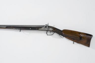 Keywords: Detalj slaglåsdubbelbössa, v sida - Livrustkammaren - 13980.jpg Damaskerad dubbelpipa med överliggande skålad spång på kammarens sidor fastlödda snäckor och på undersidan inslaget H L tre gånger B P två gånger samt 44 På h sida en oval stämpel ELG En rundad rörka <br/>Baskyl med rundat baskylblad med graverade blad bladformig ändplatta <br/>Riktmedel Kraftigt skålat sikte på baskylen <br/>Fästning Två häften för engelska pipstift Pipan fäst med baskylhakar samt två engelska pipstift av stål <br/><br/>Två flintlås ändrade till slaglås Plana låsbleck med fasade kanter på v lås graverat Guillaume på h Berleur S-formiga platta hanar med fasade kanter runt nötskruvarna svarvade ringar Nätskurna tumgrepp <br/>Fästning Två låsskruvar från v sida <br/>Dubbla avtryckare Konturerat avtryckarbleck <br/><br/>Brun halvstock av valnöt Engelsk kolv med kindstöd samt nätskuren kolvhals och förstock i nätmönstret inslaget stålstift Under kolven en oval mässingsplåt med graverat nr 6 <br/>Beslag av stål Bakplåt med flik på kolvryggen Rundad rörka med profilerad graverad spets Varbygeln bakåt utdragen och graverad med blad och blommor Rund hög framstolpe kluven bakstolpe Fri delvis dubbel bakre arm med spetsig bladformig ände Främre armens avslutning liknande en ananans med bladknippe Vid spetsrörkan och under kolven u-formiga rembyglar av stål <br/><br/>Tillbehör <br/>Laddstock av trä l 845 mm framtill skodd med konisk hornskoning l 26 mm i andra änden ett mässingsrör l 36 mm med en spiralvriden stålkrats l 38 mm original caption detalj slaglåsdubbelbössa - LRK 3847 v sida<br/> Nyckelord Bössa Föremålsbild early other date century 19 walnut e3 - eldvapen - stock material valnöt - steel e1247 - eldvapen - pipa lås riktmedel och beslag material stål size mm 201 g 3040 size mm 842 pipa size mm 1244 LRK Gustaf V av Sverige Oskar I av Sverige-Norge Guillaume Berleur anv e2 - eldvapen - lås; Guillaume Berleur Beurleur B P anonym kontrollör E L G stjärna i oval Stöckelnr 1494 anv e1 - eldvapen - pipa; anonym kontrollör H L anv e1 - eldvapen - pipa; anonym kontrollör Guillaume Berleur anv e2 - eldvapen - lås; Guillaume Berleur Beurleur B P anonym kontrollör E L G stjärna i oval Stöckelnr 1494 anv e1 - eldvapen - pipa; anonym kontrollör H L anv e1 - eldvapen - pipa; anonym kontrollör place of origin original filename lm_dig2149 39324 inventory number LRK 3847 13980 CC-BY-SA Göran Schmidt <gallery caption Different images of same object > File Detalj slaglåsdubbelbössa - Livrustkammaren - 5419 jpg </gallery> Göran Schmidt Double-barreled shotguns Shotgun images from Livrustkammaren Musket images from Livrustkammaren color images Flintlock muskets images from Livrustkammaren Media contributed by LSH dim-with multiple size templates Media contributed by LSH unmatched creator Color images from Livrustkammaren Media contributed by LSH 2013-10
