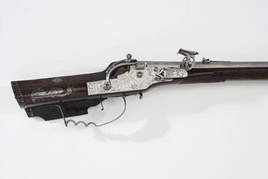 | Keywords: Detalj snapplåsstudsare - Livrustkammaren - 65346.jpg Åttsidig pipa av stål åtta räfflor Graverad dekor i form av blad på kammaren och kring mynningen På kammaren en rund mässingsstämpel med I R ovanför ett tredubbelt treblad Stöckelnr 3565 vägl 1921 205 <br/>Riktmedel Klaffsikte av stål med framförliggande profilerad gren med ekollon Stolpkorn av mässing <br/>Fästning <br/><br/>Snapplås av baltisk typ ändrat från hjullås Plant låsbleck av tysk typ bakåt avsmalnande i två fall Graverad dekor i form av hjortjakt Böjd hane med lös pålagd överkäke med konturerade sidor Hjulaxeln igensatt med stålpropp med runt huvud Den ursprungliga hanen ändrad till eldstål med oval genombruten hals Elståls-hanfjädern täckt av platta graverad med krigare med hillebard Genombruten studel över eldstålsfoten Invändigt är hjulstudeln liksom kedjelänken avlägsnad <br/>Fästning <br/>Rak avtryckare som verkar i vertikalled <br/><br/>Brun glanspolerad helstock av valnöt med kolv av tysk typ Inläggningar på kolven i form av stålband och graverade stålplattor Bakplåt av stål Kolvlådelock av trä med inläggningar i form av en kvinna hare och räv På anslaget två kämpande män med svärd Två låsskruvbrickor i form av en hund och en björn På stockens undersida framför varbygeln inlagt en hjort Näsband och genombruten rörka av stål Varbygel med tre fingerlägen kraftig båge framtill genombrutna armar <br/><br/>Tillbehör <br/>Laddstock av mässing original caption detalj snapplåsstudsare - LRK 6266<br/> Nyckelord Detalj Snapplås Studsare Föremålsbild ca 1680 walnut e3 - eldvapen - stock material valnöt - brass e9 - eldvapen - laddstock material mässing - steel e12478 - eldvapen - pipa lås riktmedel beslag och stockdekor material stål - brass e45 - eldvapen - riktmedel och pipdekor material mässing size mm 125 g 5645 m instickspipa size mm 810 pipa size mm 1070 LRK Snapphanen var mans bössa 1984 Snapphanen 1987 Basutställning Nordiska vapenformer I R över tredubbelt treblad Stöckelnr 3565 1921 205 anv e1 - eldvapen - pipa; anonym pipsmed I R över tredubbelt treblad Stöckelnr 3565 1921 205 anv e1 - eldvapen - pipa; anonym pipsmed place of origin original filename lm_dig2165 42805 inventory number LRK 6266 65346 CC-BY-SA Göran Schmidt <gallery caption Different images of same object > File Detalj snaplåsstudsare v sida - Livrustkammaren - 56785 jpg </gallery> Göran Schmidt Musket images from Livrustkammaren color images Flintlock muskets images from Livrustkammaren Media contributed by LSH dim-with multiple size templates Media contributed by LSH unmatched creator Media contributed by LSH unmatched keyword Color images from Livrustkammaren Media contributed by LSH 2013-10 |