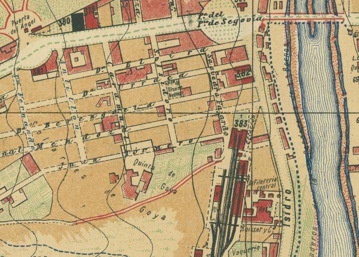 | Keywords: Detalle Plano Madrid 1900.tif  en Detail of the Plano de Madrid and surrounding villages at the beginning of the twentieth century by Facundo Cañada López Commander of the Guardia Civil Date 1900 or 1901 In this small detail see the Manzanares River and the Bridge of Segovia and the large estate that was the Quinta de Goya or Quinta del Sordo At that time still retained the house of Goya but devoid of the famous Black Paintings es Detalle del Plano de Madrid y Pueblos colindantes al empezar el siglo XX por Facundo Cañada López Comandante de la Guardia Civil Fecha 1900 ó 1901 En este pequeño detalle vemos el río Manzanares a la altura del Puente de Segovia y la gran finca que fue la Quinta de Goya o Quinta del Sordo rodeada de amplios solares que en 1900 ya se estaban urbanizando En ese momento todavía se conservaba la casa de Goya aunque desprovista de las famosas Pinturas Negras own Escaneado un detalle del mapa original CARLOS TEIXIDOR CADENAS Escaneo mapa de 1900 obra de Facundo Cañada López 2011-02-28; escaneo mapa original años 1900 o 1901 facilitado por la colección madridantiguo Cc-zero Old maps of Madrid 1900 maps Goya Quinta del Sordo |