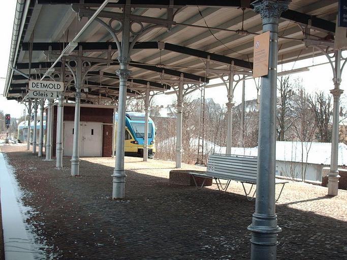Keywords: 51 56N 8 52E Detmold Station is the main train station of the city of Detmold in the German state of North Rhine-Westphalia. Opened 31 December 1880. attribution: Stefan Flöper