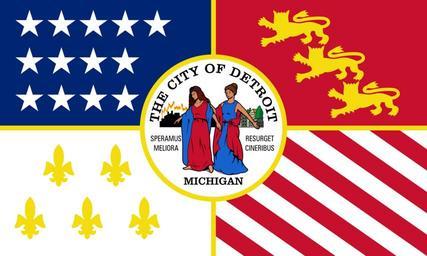MAKE A MEME View Large Image Flag of the City of Detroit The flag symbolizes the three nations that have controlled Detroit France lower left Great Britain upper right and the United States upper left and lower right The city motto translated as We Hope For Better ...