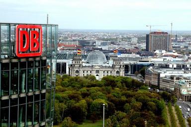 Keywords: deutsche bahn logo lettering db company headquarters berlin reichstag skyscraper potsdam place city overview view