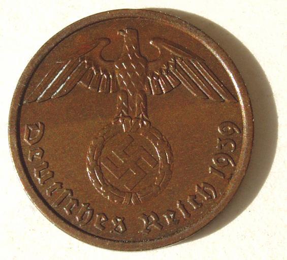 | Keywords: Deutsches Reich 2 Pf 1939 A 62.jpg Deutsches Reich 2 Reichspfennig 1939 A d 20 mm 3 333 gramm Cu/Sn/Zn 950/40/10 NobbiP 2011-04-11 Deutsches Reich <gallery> File Deutsches Reich 2 Pf 1939 A 61 jpg 2 Reichspfennig 1939 </gallery> Nazi symbol Reichsmark coins of the Third Reich 0002 1939 coins Eagles on coins Nazi Swastikas |