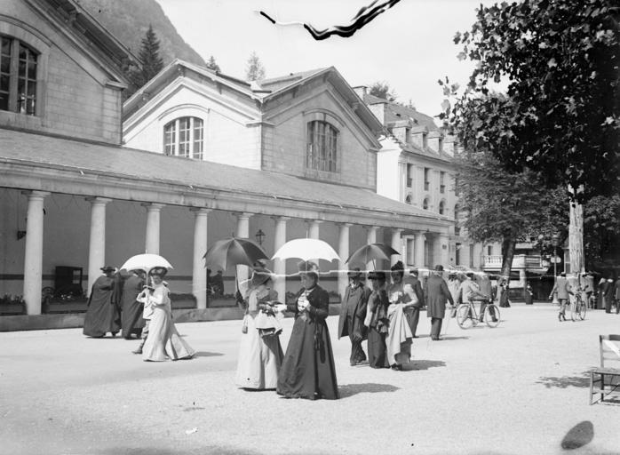 | Keywords: bibliothèque de toulouse bibliothèquedetoulouse parasol women bicycle baths thermal 1901 blackandwhite monochrome black and white Fonds Trutat - Photographie ancienne Cote : TRU C 95 Localisation : Fonds ancien Original non communicable Titre : Devant l'établissement thermal, Luchon, sept. 1901 Auteur : Trutat, Eugène Rôle de l’auteur : Photographe Lieu de création : Bagnères-de-Luchon (Haute-Garonne) Date de création : : 1901 Mesures : 9 x 12 cm Observations : Partie du titre illisible. - Annotation : "Sion Jougla ". Mot(s)-clé(s) : -- Thermes -- Bâtiment -- Façade -- Galerie -- Colonne -- Femme -- Costume féminin -- Ombrelle -- Homme -- Bagnères-de-Luchon (Haute-Garonne) -- Thermes (Bagnères-de-Luchon) -- Parc des Quinconces (Bagnères-de-Luchon) -- Pique (France ; vallée) -- Pyrénées (France) -- 20e siècle, 1e quart Médium : Photographies -- Négatifs sur plaque de verre -- Noir et blanc -- Scènes de rue Bibliographie : Frappé (Jean-Bernard). - Autrefois Bagnères de Luchon. Tome I. - Anglet : Atlantica, 2001. - 345 p. ; 15 x 22 cm. - (Autrefois) cf. p. 304-307 Bibliothèque de Toulouse. Domaine public Fonds Trutat - Photographie ancienne Cote : TRU C 95 Localisation : Fonds ancien Original non communicable Titre : Devant l'établissement thermal, Luchon, sept. 1901 Auteur : Trutat, Eugène Rôle de l’auteur : Photographe Lieu de création : Bagnères-de-Luchon (Haute-Garonne) Date de création : : 1901 Mesures : 9 x 12 cm Observations : Partie du titre illisible. - Annotation : "Sion Jougla ". Mot(s)-clé(s) : -- Thermes -- Bâtiment -- Façade -- Galerie -- Colonne -- Femme -- Costume féminin -- Ombrelle -- Homme -- Bagnères-de-Luchon (Haute-Garonne) -- Thermes (Bagnères-de-Luchon) -- Parc des Quinconces (Bagnères-de-Luchon) -- Pique (France ; vallée) -- Pyrénées (France) -- 20e siècle, 1e quart Médium : Photographies -- Négatifs sur plaque de verre -- Noir et blanc -- Scènes de rue Bibliographie : Frappé (Jean-Bernard). - Autrefois Bagnères de Luchon. Tome I. - Anglet : Atlantica, 2001. - 345 p. ; 15 x 22 cm. - (Autrefois) cf. p. 304-307 Bibliothèque de Toulouse. Domaine public |