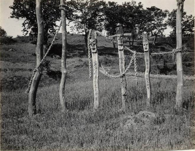 | Keywords: Devil posts, Korea, (s.d.) (Taylor box21num26).jpg en <br> Devil posts Korea s d Evil spirits are an active force in Korean religion These posts are placed at village approaches to frighten away the malign spirits In earlier days they were found everywhere in Korea Except in very remote areas most of these posts have now disappeared removed by the Japanese to make room for building wider roads The names commonly given these posts may be indicative of the relative position occupied by women in Korean society The posts are called Mr General Heaven and Mrs General Hell Date created 1908/1922 Publisher of the Digital Version University of Southern California Libraries Repository Name Methodist Church U S Legacy Record ID kda-m93 Photographer Methodist Episcopal Church Format photograph Archival file kda_Volume42/Taylor_box21num26 jpg Rights Neither the General Conference nor any General Agency of The United Methodist Church successor to the Methodist Episcopal Church claims any interest in the photos or images Filename Taylor_box21num26 Coverage date 1908/1922 Contributing entity University of Southern California Repository Address Nashville Tennessee Part of collection Korean Digital Archive Donor Taylor Ewing Bevard Type images Part of subcollection The Reverend Corwin Nellie Taylor Collection Geographic Subject Country Korea Compiler Taylor Corwin; Blood-Taylor Nellie 1908/1922 Methodist Episcopal Church http //digitallibrary usc edu/cdm/ref/collection/p15799coll48/id/725 PD-Japan-oldphoto Korean archive in the USC digital library Images from USC Digital Library uploaded by Fæ |