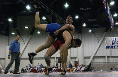 Keywords: DF-SD-06-10733.jpg US Air Force USAF First Lieutenant 1LT Philip Johnston a 211 5-pound Greco-Roman wrestler lifts his opponent during the Mens 96kg Weight Class final match of the 2004 US National Wrestling Championship held in Las Vegas Nevada NV SUBSTANDARD Released to Public The United States Department of Defense website at http //www defenselink mil http //www defenselink mil 2004-04-09 21 54 00 Airman 1st Class Daniel Decook USAF PD-USGov-Military-Air Force PD-USGov-Military PD-USGov Greco-Roman wrestling |