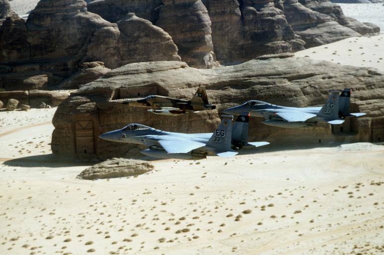| Keywords: DF-ST-92-07777 (5375902890).jpg An air-to-air view of two U S Air Force F-15C Eagle fighter aircraft from the 33rd Tactical Fighter Wing Eglin Air Force Base Fla and a Royal Saudi Air Force F-5E Tiger II fighter aircraft during a mission in support of Operation Desert Storm The aircraft are armed with AIM-9 Sidewinder air-to-air missiles https //www flickr com/photos/usairforce/5375902890/ DF-ST-92-07777 2011-01-21 11 23 https //www flickr com/people/39513508 N06 US Air Force from USA PD-USGov Official U S Air Force https //flickr com/photos/39513508 N06/5375902890 2016-12-15 01 07 38 United States Government Work Files from the U S Air Force Flickr stream Files uploaded by Reguyla United States Air Force |