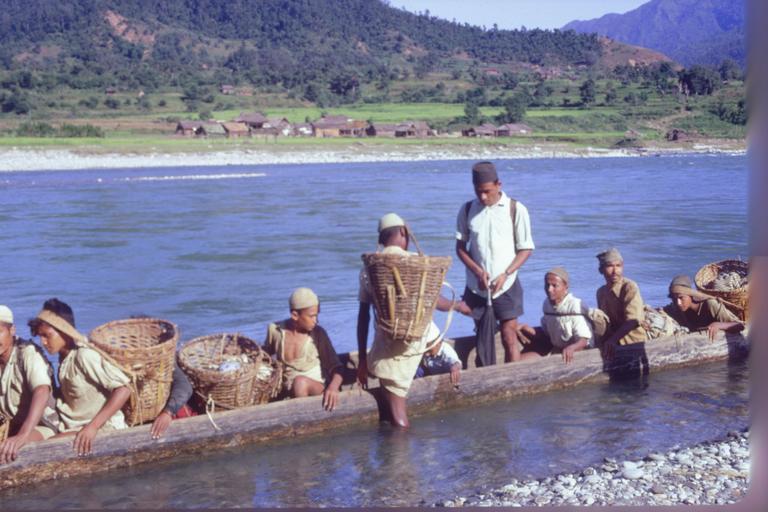 | Keywords: landscape porter river river crossing rivercrossing stream transportation nepal outdoor boat vehicle Date: 1968-11 Location: Shishaghat, Tanahun Description: Porters being loaded into a boat to cross the Madi River, on the path from Pokhara to Kunchha. Date: 1968-11 Location: Shishaghat, Tanahun Description: Porters being loaded into a boat to cross the Madi River, on the path from Pokhara to Kunchha. | ||||