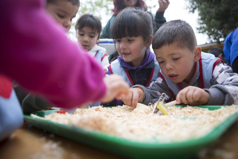 | Keywords: people groupshot niñas y niños del Jardín Infantil “Mi Refugio” en la comuna de Cerrillos, perteneciente a la Junta Nacional de Jardines Infantiles (JUNJI), jugaron a ser científicos y realizaron una demostración de experimentos adecuados a su edad, en el marco de la celebración del “Día de la Ciencia en mi jardín”. La actividad se llevó a cabo en el contexto de la XXI Semana Nacional de la Ciencia y la Tecnología 2015, el mayor evento de divulgación y valoración científica del país, del Programa Explora CONICYT, y que en esta nueva versión aborda la temática de la luz. Para esto se elaboró un cuadernillo con actividades científicas apropiadas para niñas y niños pequeños y que se está repartiendo en 3 mil establecimientos de Educación Parvularia a lo largo del país. Los pequeños científicos contaron con la presencia de Desirée López de Maturana Luna, vicepresidenta Ejecutiva de la JUNJI; Alejandra Mizala, integrante del Consejo de CONICYT; Arturo Aguirre, alcalde de Cerrillos; María Isabel Flores, directora del Jardín Infantil Mi Refugio, y de la comunidad educativa del establecimiento. Uno de los experimentos realizado por los párvulos de la JUNJI fue ¨Magnetizados” en el cual descubren por qué el imán atrae objetos metálicos. Este consiste en poner en una bandeja elementos metálicos y plásticos separados por aserrín, para que los niños pueda descubrir con el imán la forma de atraer el objeto sin mirar ni usar las manos. El párvulo desliza el imán sobre el aserrín para atraer el objeto metálico. Luego puede categorizar los elementos que no se unieron y realizar hipótesis respecto de por qué no se pegan al imán. Las educadoras trabajan con los niños y niñas a través de la exploración libre y espontánea, para que vayan descubriendo por si mismos las respuestas. La Vicepresidenta Ejecutiva de la JUNJI afirmó que “los mayores científicos son los niños y niñas. Ellos descubren, están en permanente asombro, mirando cada detalle. Por lo tanto, tenemos que generar experiencias de aprendizajes que permitan que se asombren y generen hipótesis. Con esta alianza con Explora CONICYT podemos ir avanzando en esas materias, y tener apoyos científicos que permitan a los adultos dar respuesta a estos experimentos y experiencias, que parecen mágicas”. Por su parte el alcalde Cerrillos, Arturo Aguirre, valoró la actividad y expresó que “el abrir los espacios para generar la inquietud del conocimiento de las ciencias en nuestros jardines y escuelas municipales, donde se cobija la parte de nuestro pueblo más vulnerable, naturalmente que es un camino correcto y necesario para poder liberar todas las capacidades de aprendizaje que yacen en nuestros niños. Por lo tanto no es solo el gusto por la inquietud intelectual, sino que también es cómo vamos caminando para que nuestro país avance en espacios de igualdad y que vaya disminuyendo este abismo en el acceso a estas técnicas de conocimiento”. Alejandra Mizala, miembro del Consejo de CONICYT, expresó, “el esfuerzo que está haciendo el Programa Explora al traer este folleto a los jardines infantiles es súper importante, porque en la medida de que más temprano acerquemos la ciencia a los niños, más fácil va a ser que ellos se enamoren de ésta. Lo que hoy vimos, por ejemplo, fue que gracias a una actividad que parecía un juego, ellos conocieron fenómenos relacionados con la luz, lo que en un futuro podría ayudarles a entender conceptos con un fondo científico”. niñas y niños del Jardín Infantil “Mi Refugio” en la comuna de Cerrillos, perteneciente a la Junta Nacional de Jardines Infantiles (JUNJI), jugaron a ser científicos y realizaron una demostración de experimentos adecuados a su edad, en el marco de la celebración del “Día de la Ciencia en mi jardín”. La actividad se llevó a cabo en el contexto de la XXI Semana Nacional de la Ciencia y la Tecnología 2015, el mayor evento de divulgación y valoración científica del país, del Programa Explora CONICYT, y que en esta nueva versión aborda la temática de la luz. Para esto se elaboró un cuadernillo con actividades científicas apropiadas para niñas y niños pequeños y que se está repartiendo en 3 mil establecimientos de Educación Parvularia a lo largo del país. Los pequeños científicos contaron con la presencia de Desirée López de Maturana Luna, vicepresidenta Ejecutiva de la JUNJI; Alejandra Mizala, integrante del Consejo de CONICYT; Arturo Aguirre, alcalde de Cerrillos; María Isabel Flores, directora del Jardín Infantil Mi Refugio, y de la comunidad educativa del establecimiento. Uno de los experimentos realizado por los párvulos de la JUNJI fue ¨Magnetizados” en el cual descubren por qué el imán atrae objetos metálicos. Este consiste en poner en una bandeja elementos metálicos y plásticos separados por aserrín, para que los niños pueda descubrir con el imán la forma de atraer el objeto sin mirar ni usar las manos. El párvulo desliza el imán sobre el aserrín para atraer el objeto metálico. Luego puede categorizar los elementos que no se unieron y realizar hipótesis respecto de por qué no se pegan al imán. Las educadoras trabajan con los niños y niñas a través de la exploración libre y espontánea, para que vayan descubriendo por si mismos las respuestas. La Vicepresidenta Ejecutiva de la JUNJI afirmó que “los mayores científicos son los niños y niñas. Ellos descubren, están en permanente asombro, mirando cada detalle. Por lo tanto, tenemos que generar experiencias de aprendizajes que permitan que se asombren y generen hipótesis. Con esta alianza con Explora CONICYT podemos ir avanzando en esas materias, y tener apoyos científicos que permitan a los adultos dar respuesta a estos experimentos y experiencias, que parecen mágicas”. Por su parte el alcalde Cerrillos, Arturo Aguirre, valoró la actividad y expresó que “el abrir los espac