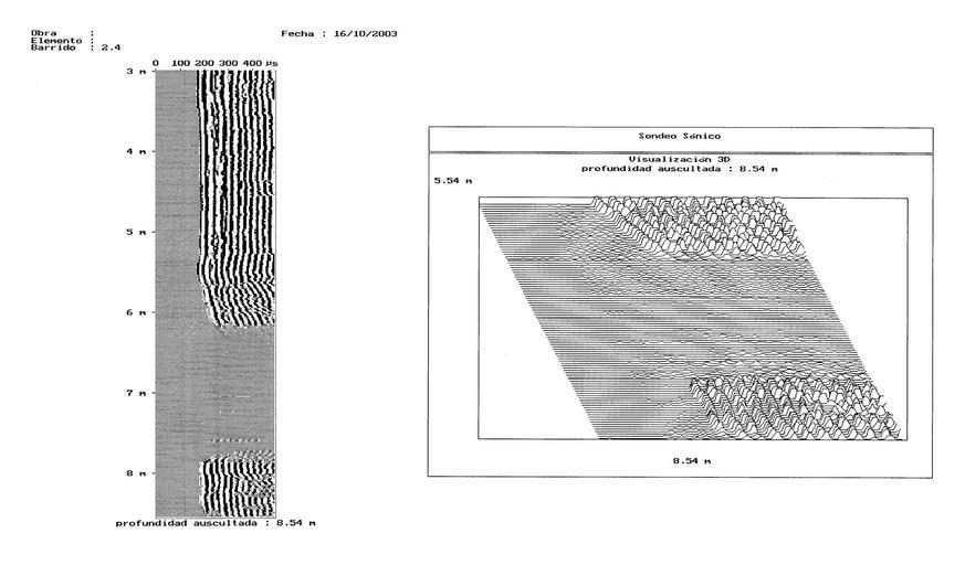 Keywords: Diagrafía y 3D.JPG es Diagrafía en la que se observa una anomalía y su visualización 3D Own 2008-20-24 n d INSITU Dominio publico Geotechnics
