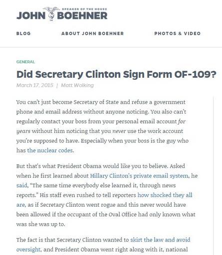 | Keywords: Did Secretary Clinton Sign Form OF-109.jpg Did Secretary Clinton Sign Form OF-109 United States House of Representatives March 17 2015 Speaker of the House John Boehner Did Secretary Clinton Sign Form OF-109 March 17 2015 Matt Wolking You can ™t just become Secretary of State and refuse a government phone and email address without anyone noticing You also can ™t regularly contact your boss from your personal email account for years without him noticing that you never use the work account you ™re supposed to have Especially when your boss is the guy who has the nuclear codes But that ™s what President Obama would like you to believe Asked when he first learned about Hillary Clinton ™s private email system he said The same time everybody else learned it through news reports His staff even rushed to tell reporters how shocked they all are as if Secretary Clinton went rogue and this never would have been allowed if the occupant of the Oval Office had only known what was she was up to The fact is that Secretary Clinton wanted to skirt the law and avoid oversight and President Obama went right along with it national security and transparency and the law be damned Now Clinton ™s team and the White House are scrambling to answer a simple question about whether or not she signed form OF-109 as all State Department employees must do when they leave their jobs Signing the form certifies that the employee has turned over all official records and emails to the federal government as required State Department spokeswoman Jen Psaki couldn ™t say last week or on Friday or again yesterday whether Clinton signed the document And Hillary Clinton herself ignored the question quickly scurrying away when confronted by a reporter in Manhattan As for President Obama he thinks the whole thing is pretty funny It ™s not From the very beginning of the investigation into what happened in Benghazi the Obama administration ™s response and their attempts to blame a YouTube video document requests and even congressional subpoenas were ignored It wasn ™t until after the Select Committee on Benghazi demanded the records that the State Department asked Clinton to turn over her emails and it wasn ™t until Clinton received that request that she provided only the email she wanted to “ nearly two years after she left the administration That ™s a big problem if she signed that form like she was supposed to And that ™s also why Clinton is being urged to turn her server over to a neutral detached third-party arbiter who can determine which documents should be public and which should remain private Meanwhile her story keeps changing First her team said they provided the State Department with some of her emails based on keyword searches Now they say each one of her emails were read before being deleted or turned over What is the truth One thing is certain the Select Committee will continue seeking just that http //www speaker gov/general/did-secretary-clinton-sign-form-109 Did Secretary Clinton Sign Form OF-109 March 17 2015 Matt Wolking Office of Speaker of the House John A Boehner www speaker gov see also https //web archive org/web/20150317170303/http //www speaker gov/general/did-secretary-clinton-sign-form-109 archived by the Internet Archive 2015-03-17 Office of Speaker of the House John A Boehner s Did Secretary Clinton Sign Form OF-109 at Wikisource John Boehner Hillary Rodham Clinton in 2015 Hillary Rodham Clinton-related documents Hillary Rodham Clinton email use as United States Secretary of State Form OF-109 PD-USGov |
