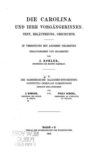 Keywords: Die bambergische Halsgerichtsordnung (Kohler Scheel) p 002.gif p_003