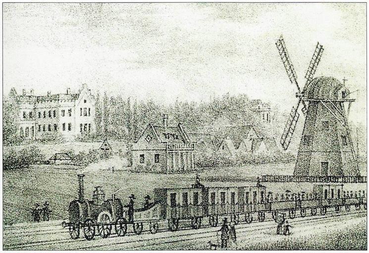 | Keywords: Die Eisenbahn mit der herzoglichen Villa von Neu-Richmond.jpg de Die Eisenbahn mit der Herzoglichen Villa von Neu-Richmond aus einer Sammel-Lithographie G Täubert um 1840 Städtisches Bildarchiv Braunschweig Fundstelle Claudia A Gronen Carl Theodor Ottmers klassizistisches Empfangsgebäude von 1843 als zweiter Bahnhof der Braunschweigischen Staatseisenbahn Abb 115 Gustav Täubert 1817 “1913 deutscher Zeichner und Verleger um 1840 Richmondpark Kennelgebiet Rail transport in Braunschweig Schloss Neu-Richmond Engravings of Braunschweig PD-old |