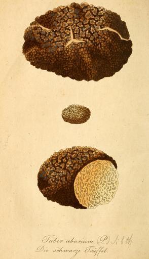 Keywords: Die essbaren schwämme des Oesterreichischen Kaiserstaates von Leopold Trattinnick. Tuber cibarium.jpg hu szarvasgomba Tuber cibarium v melanosporum 1809 http //www biodiversitylibrary org/item/24309 page/130/mode/1up von Leopold Trattinnick other versions PD-old-100 Uploaded with UploadWizard Truffles |