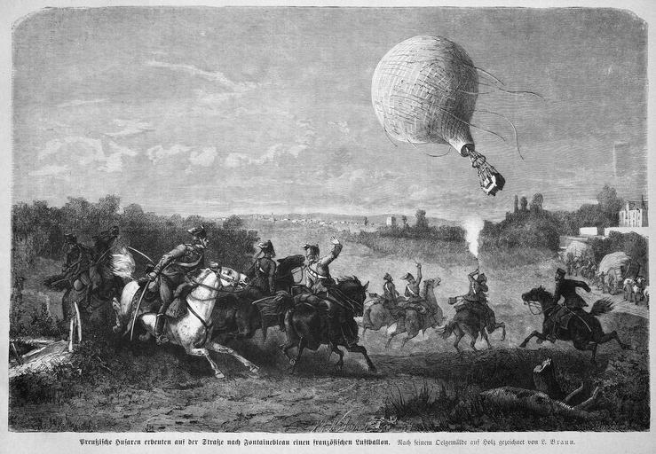 Keywords: Die Gartenlaube (1872) b 387.jpg 387 388 Louis Braun 1836 “1916 de Preußische Husaren erbeuten auf der Straße nach Fontainebleau einen französischen Luftballon Nach seinem Oelgemälde auf Holz gezeichnet von L Braun <br />Bild von Seite 387 der Zeitschrift Die Gartenlaube 1872 Image from page 387 of journal Die Gartenlaube 1872 Balloon aircraft in art 1872 Balloon aircraft of France 1871 ca Die Gartenlaube Franco-Prussian War Military ballooning 1871 ca Louis Braun Anti-balloons warfare Hussars of Prussia |
