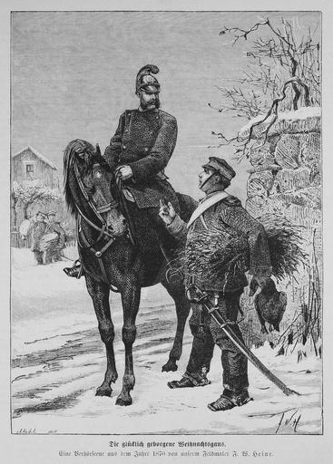 Keywords: Die Gartenlaube (1874) b 811.jpg 811 812 Equestrian drawings Poultry in art Paintings of winter Males with swords in art People in conversation in art People wearing uniforms Friedrich Wilhelm Heine