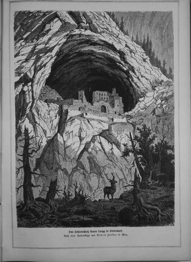 Keywords: Die Gartenlaube (1877) 201.jpg Das Höhlenschloss Puxer Luegg in Steiermark bei Schloss Pux Nach einer Farbenskizze von Robert Zander in Wien 200 202 Castles in caves Robert Zander