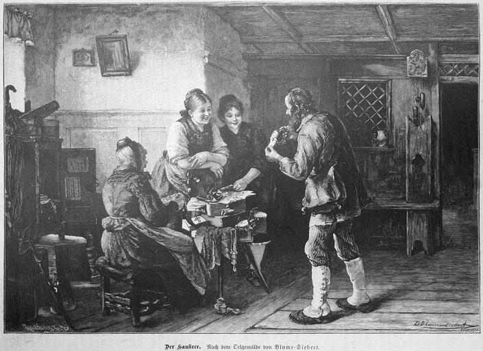 Keywords: Die Gartenlaube (1885) b 245.jpg de Der Hausierer cropped from Die_Gartenlaube_ 1885 _245 jpg Ludwwig Blume-Siebert 1853-1929 1885 Ludwig Blume-Siebert PD-old-70-1923