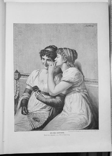 Keywords: Die Gartenlaube (1892) 081.jpg Adolf Hering 080 082 derivative works Ein süßes Geheimnis von Adolf Hering 1892 jpg Fans in art Adolf Hering People in conversation in art Secrecy in art Empire silhouette Regency revival genre paintings