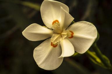 Keywords: plant blossom flower outdoor serene Dietes grandiflora (large wild iris, fairy iris) is a rhizomatous perennial plant with long, rigid, sword-like green leaves belonging to the Iridaceae family. This species is common in horticulture in its native South Africa, where it is often used in public gardens, beautification of commercial premises and along roadsides. The blooms are white marked with yellow and violet. Dark markings are found at the base of the outer tepals. These are borne in abundance during summer, especially after rain. Flowers are followed by 5 cm long green capsules that contain very dark brown seeds, these are dispersed when the capsule splits open. en.wikipedia.org/wiki/Dietes_grandiflora Dietes grandiflora (large wild iris, fairy iris) is a rhizomatous perennial plant with long, rigid, sword-like green leaves belonging to the Iridaceae family. This species is common in horticulture in its native South Africa, where it is often used in public gardens, beautification of commercial premises and along roadsides. The blooms are white marked with yellow and violet. Dark markings are found at the base of the outer tepals. These are borne in abundance during summer, especially after rain. Flowers are followed by 5 cm long green capsules that contain very dark brown seeds, these are dispersed when the capsule splits open. en.wikipedia.org/wiki/Dietes_grandiflora