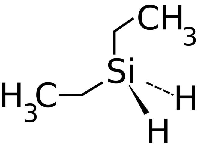 Keywords: Diethylsilan.svg de Struktur von Diethylsilan 2015-05-01 own Bert Kilanowski other versions cc-zero Uploaded with UploadWizard Organosilanes