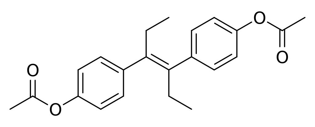 Keywords: Diethylstilbestrol diacetate.svg Chemical structure of diethylstilbestrol diacetate Own 21 47 30 September 2016 UTC Ed Edgar181 Diethylstilbestrol Acetate esters