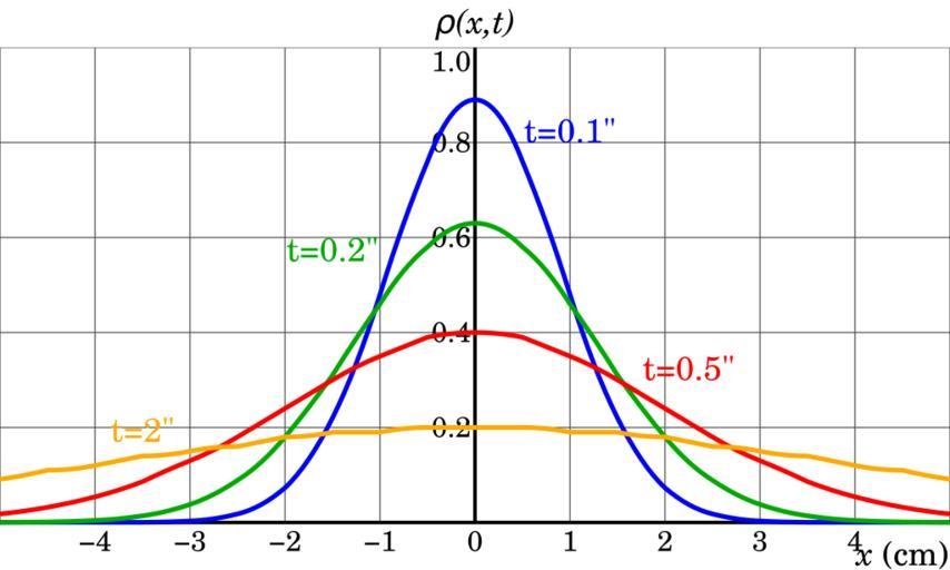 Keywords: Diffusion of Brownian particles.svg Brownian motion Einstein's theory Einstein's theory <math>\rho x t \frac 1 \sqrt 4\pi t e -\frac x 2 4t </math> 2011-05-20 A reproduction from a figure from Nonequilibrium Statistical Thermodyamics Source author Bernard H Lavenda<br/>Vector version Rubber Duck <small> </small> Other fields T + Rubber Duck <small> </small> cc-zero Uploaded with UploadWizard Brownian motion Files by User InverseHypercube |