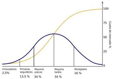 | Keywords: Difusióndeideas.svg La difusión de las innovaciones según Rogers 1962 En el gráfico en azul los grupos de adoptantes de nueva tecnología en sucesión en amarillo la cuota de mercado hasta que finalmente se alcanza el nivel de saturación The diffusion of innovations according to Rogers 1962 With successive groups of consumers adopting the new technology shown in blue its market share yellow will eventually reach the saturation level Labels in Spanish Difusióndeideas png 2011-01-31 15 07 UTC Difusióndeideas png Diffusionofideas PNG Tungsten derivative work Osado derivative work Nicoguaro <span class signature-talk >talk</span> Vectorizado Nicoguaro Difusióndeideas png Sociology Technical diagrams |