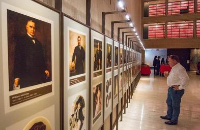 | Keywords: lbj president lyndon johnson library books karl rove bush austin texas usa David Williams looks over images of U.S. Presidents and First Ladies during the reception in the Great Hall after the Rove event. The LBJ Presidential Library and the Texas Book Festival co-hosted an evening with GOP political consultant Karl Rove on Tuesday, December 1, 2015. Rove discussed his forthcoming book, The Triumph of William McKinley: Why the Election of 1896 Still Matters, with LBJ Library Director Mark Updegrove. Rove talked about the political climate in 1896, what lessons both political parties can learn from McKinley, and the already active 2016 election season. Prior to the event, The Store at LBJ hosted a book signing of Rove’s The Triumph of William McKinley. Rove served as Senior Advisor to President George W. Bush from 2000-2007 and was White House Deputy Chief of Staff from 2004-2007. He now writes a weekly op-ed column for The Wall Street Journal and is a Fox News contributor. His previous book, Courage and Consequence: My Life as a Conservative in the Fight, was a New York Times bestseller. LBJ Library photo by Jay Godwin David Williams looks over images of U.S. Presidents and First Ladies during the reception in the Great Hall after the Rove event. The LBJ Presidential Library and the Texas Book Festival co-hosted an evening with GOP political consultant Karl Rove on Tuesday, December 1, 2015. Rove discussed his forthcoming book, The Triumph of William McKinley: Why the Election of 1896 Still Matters, with LBJ Library Director Mark Updegrove. Rove talked about the political climate in 1896, what lessons both political parties can learn from McKinley, and the already active 2016 election season. Prior to the event, The Store at LBJ hosted a book signing of Rove’s The Triumph of William McKinley. Rove served as Senior Advisor to President George W. Bush from 2000-2007 and was White House Deputy Chief of Staff from 2004-2007. He now writes a weekly op-ed column for The Wall Street Journal and is a Fox News contributor. His previous book, Courage and Consequence: My Life as a Conservative in the Fight, was a New York Times bestseller. LBJ Library photo by Jay Godwin |